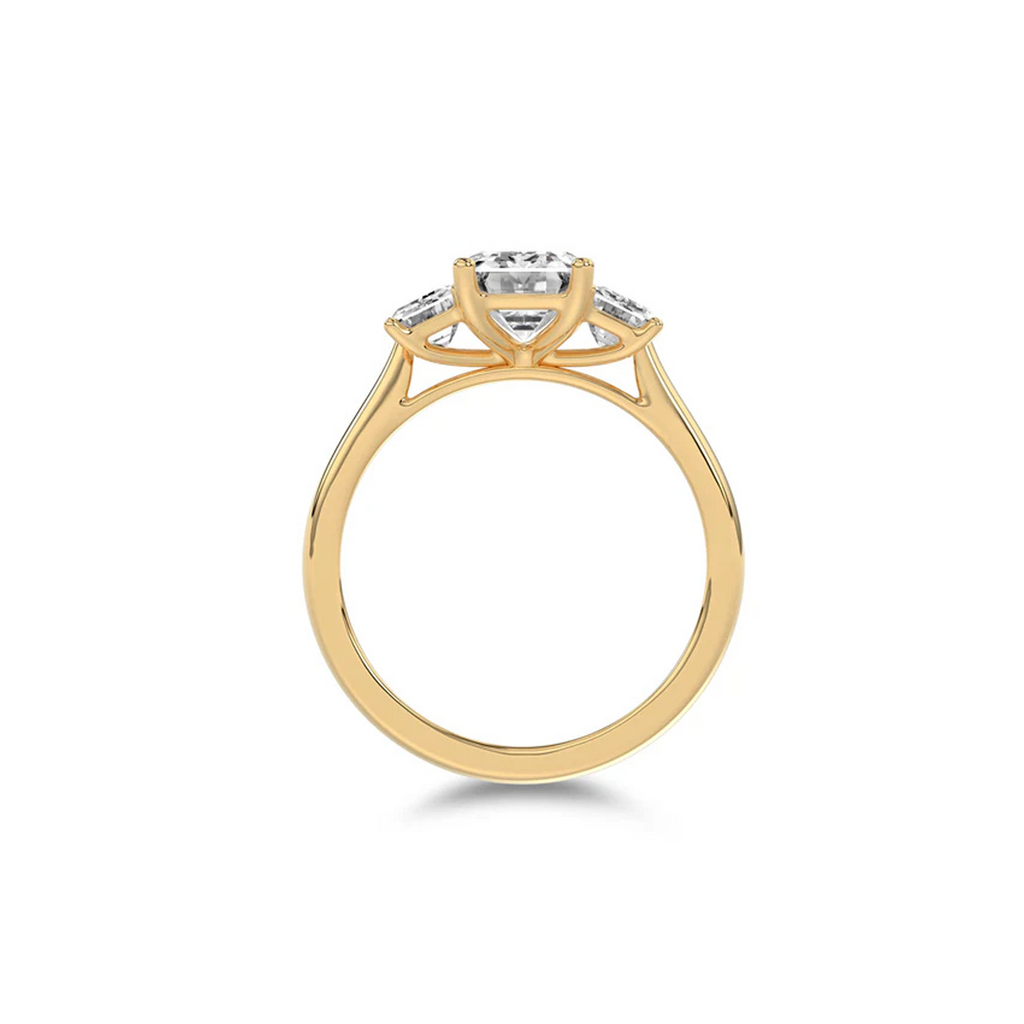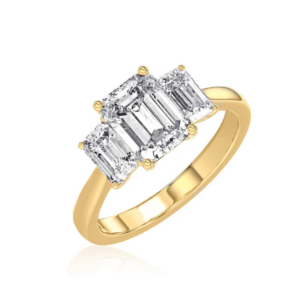 Lab Grown 2.65ct Emerald Cut Trilogy Diamond 18ct Yellow Gold Ring
