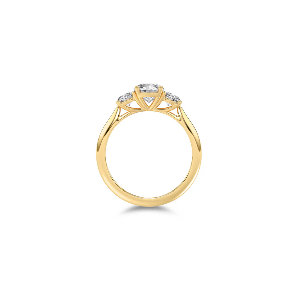 18ct Yellow Gold Collet Set Trilogy ring with fine round diamonds