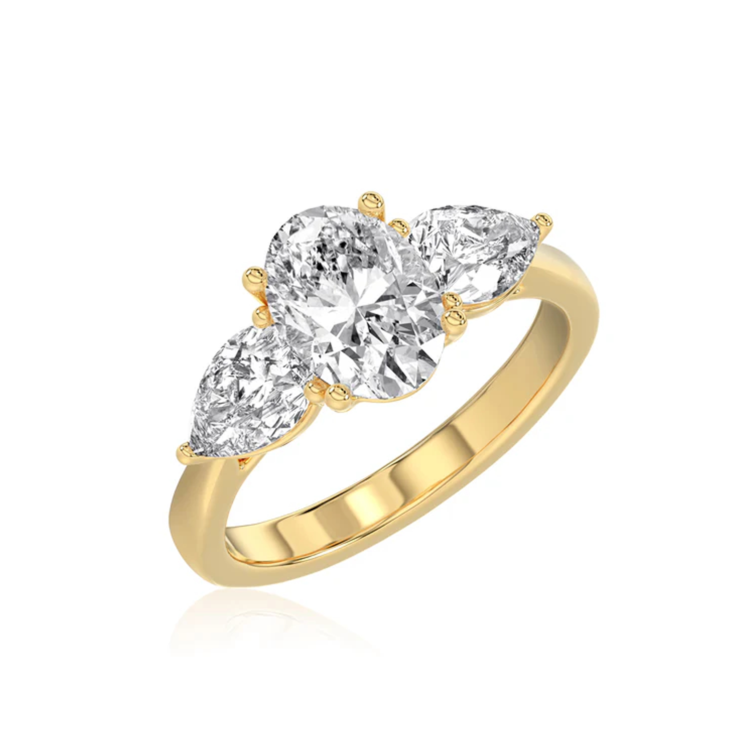 Lab Grown 2.54ct Oval & Pear Cut Diamonds 18ct Yellow Gold Ring