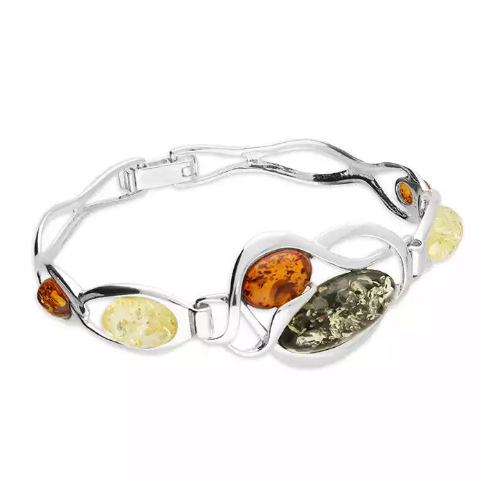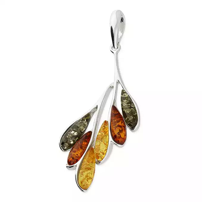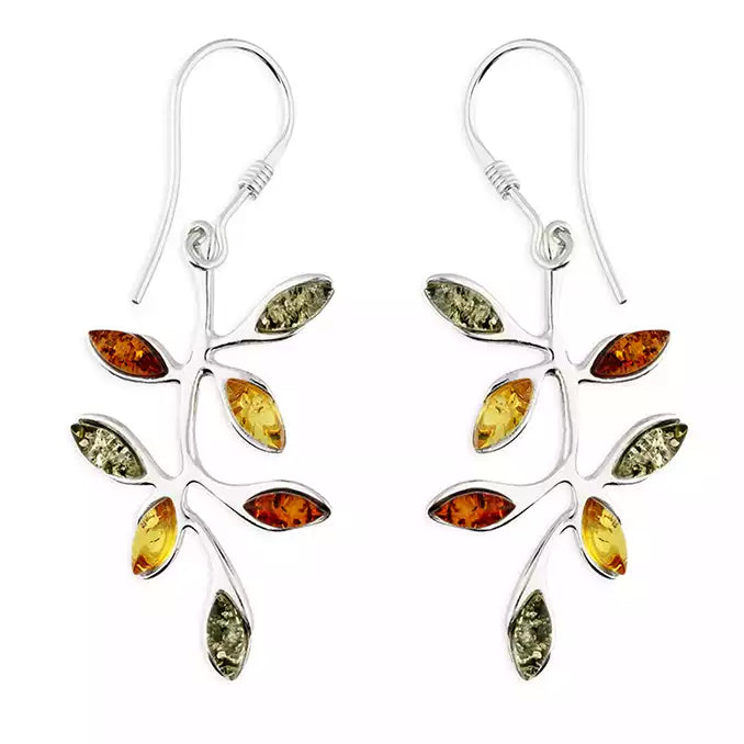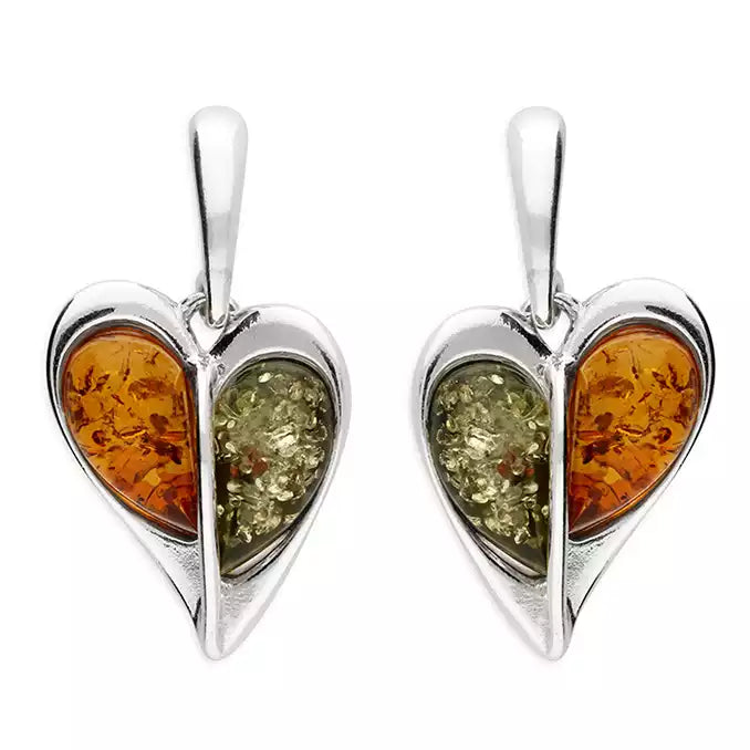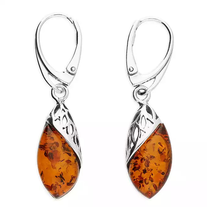 Sterling Silver Fancy Half Teardrop Amber Earrings