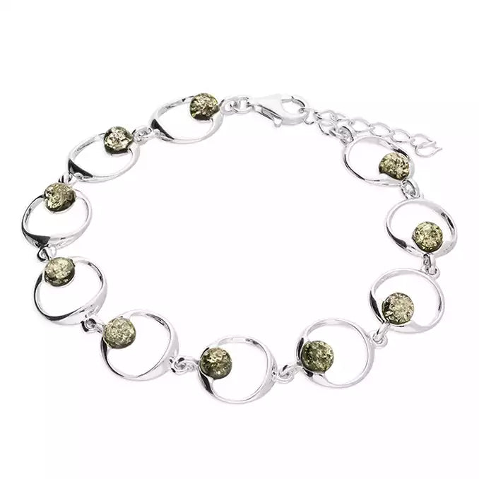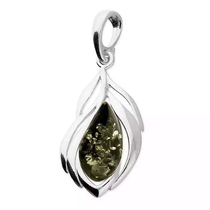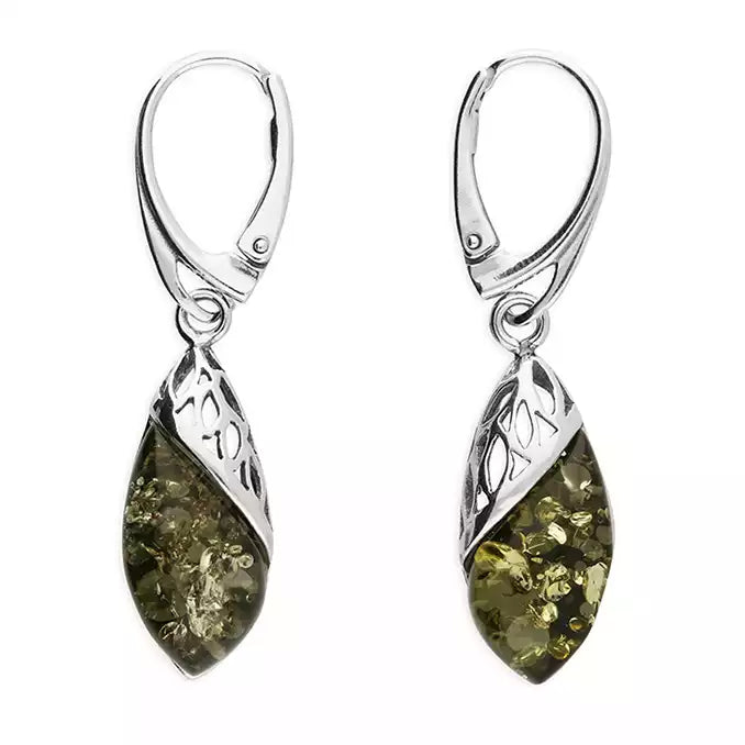 Sterling Silver Fancy Half Teardrop Green Amber Earrings