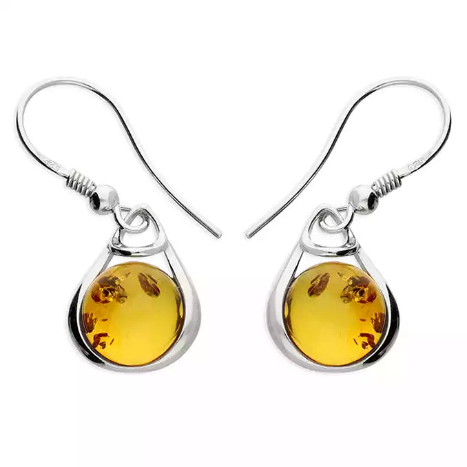 Sterling Silver Amber Teardrop Surround Drop Earring