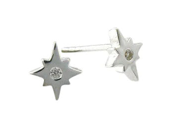 Silver North Star Cubic Zirconia Stud Earrings