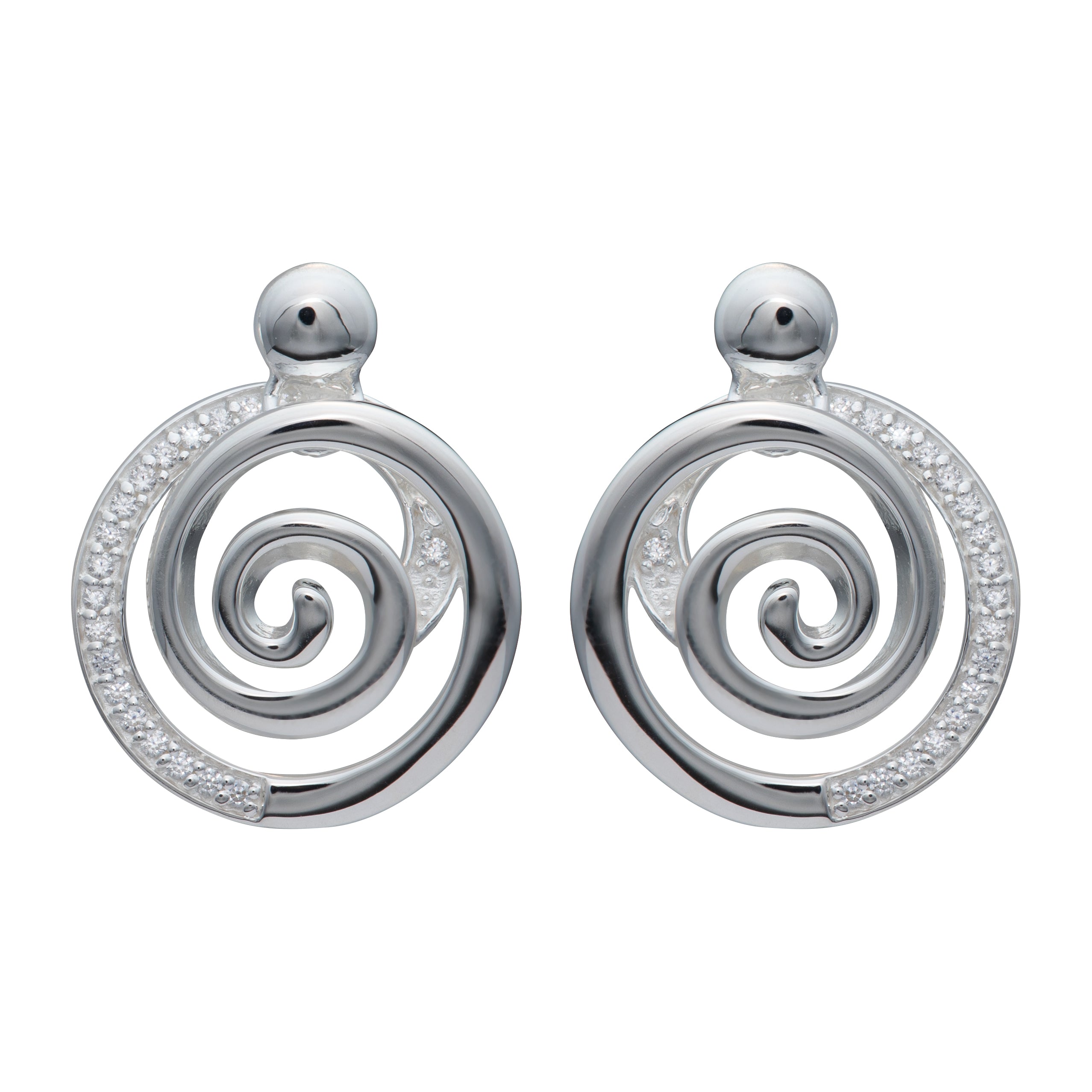 Sterling Silver earrings in a swirl design with cubic zirconia .