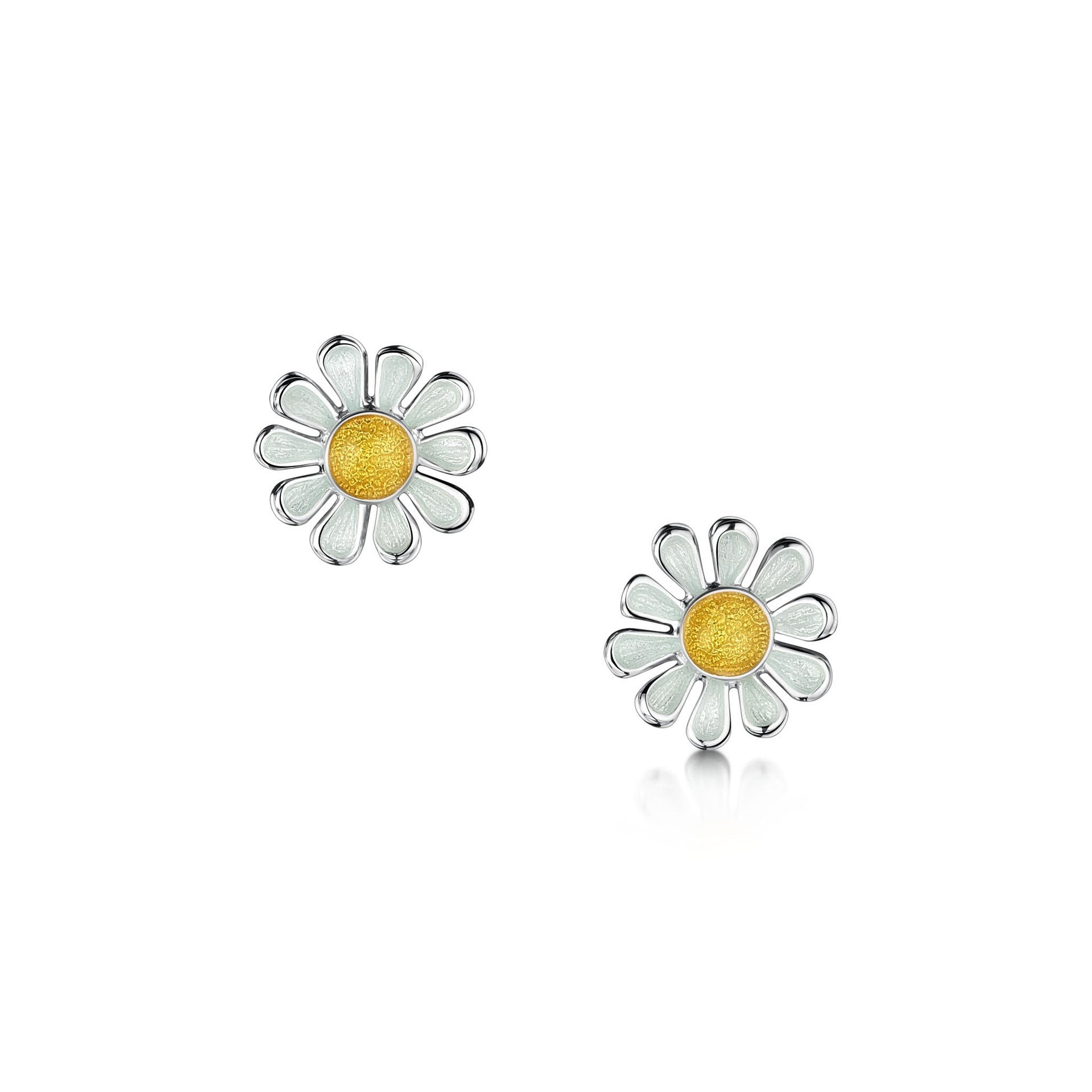 EE234-SUNSHThese Daisies at Dawn stud earrings in sterling silver feature an enamelled daisy design and are beautifully finished by hand in our Orkney workshop. The earrings measure approximately 11mm in diameter.