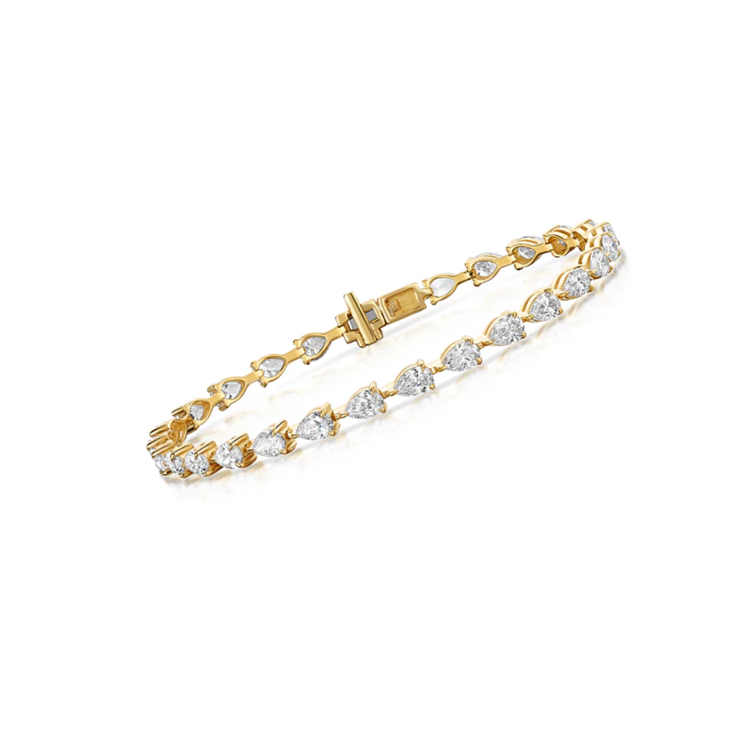 Lab Grown 7.00ct Pear Cut Diamonds 18ct Yellow Gold Tennis Bracelet