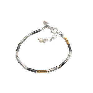Ladies Stainless Steel and Pearl Leather Bracelet