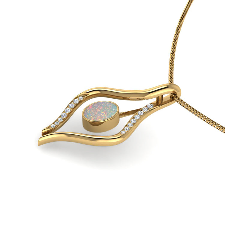 Natural Opal 18ct Yellow Gold Pendant with Fine Diamond