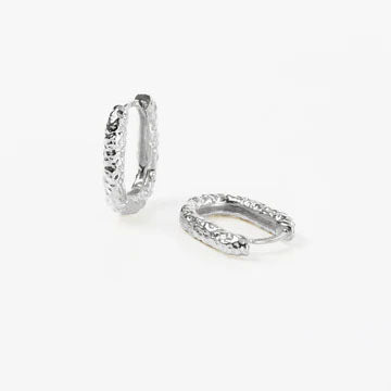 Textured oval silver huggie earrings.
