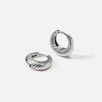 Twisted silver huggie earrings.
