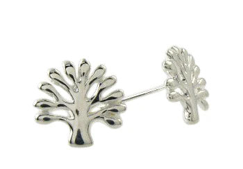 Simple plain stud silver earrings in 'Tree of Life' design with polish finish.
