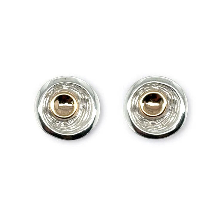 Gold And Silver Disk Stud Earrings