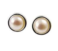 Round White Pearl Stud Earrings