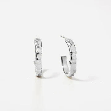 Hammered Silver Half Hoops