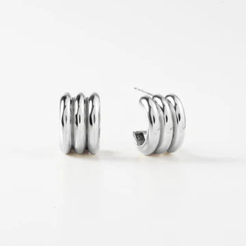 Triple Silver Half Hoop Earrings