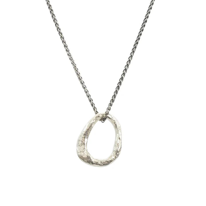Silver textured oval design pendant necklace with a silver slightly oxidised chain.