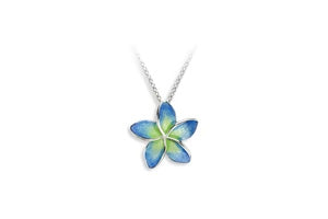 Blue Plumeria Pendant Necklace