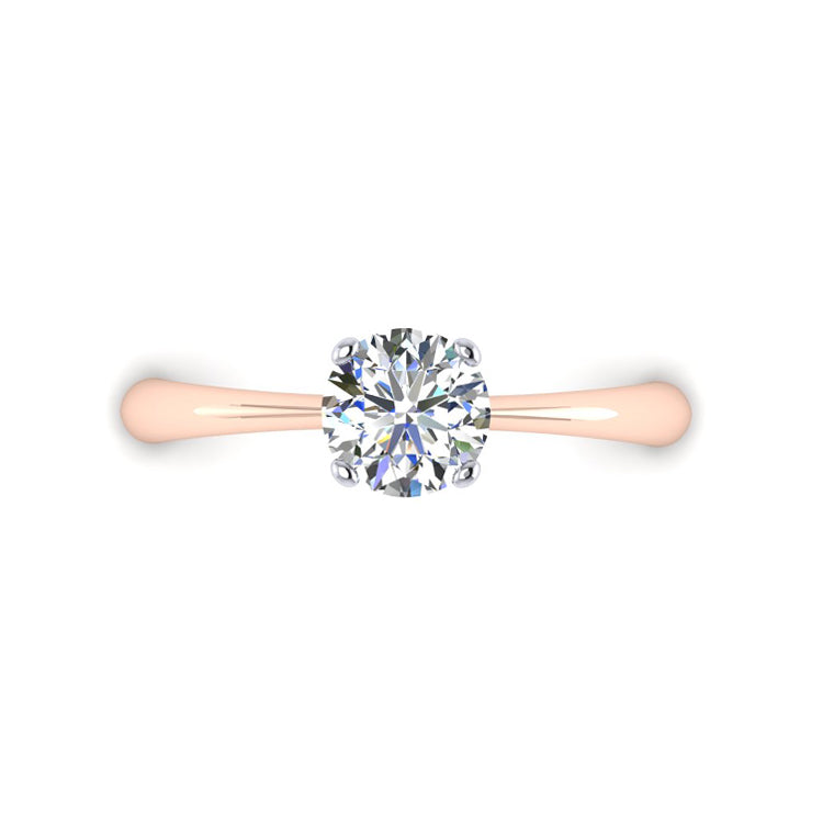 kkSimple, refined and beautifully elegant, this truly hand made 18ct Rose Gold ring with a beautiful modern round diamond in a platinum fluted setting is perfect for someone looking for a timeless design but with a difference.
