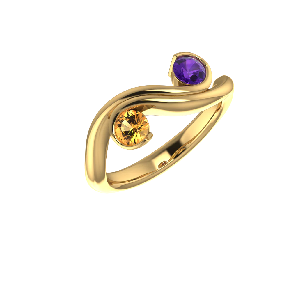 9ct Yellow Gold Two Stone Twist Ring - Amethyst & Citrine