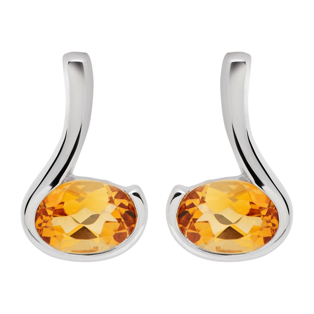 An unusual shaped polished silver stud holding a golden citrine stone.
