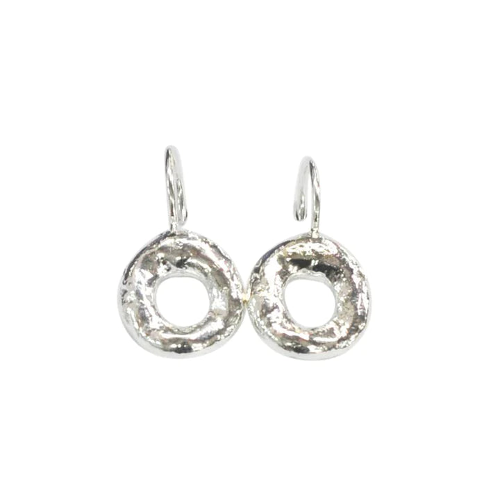Organic silver circle drop earrings.