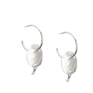 Statement plain silver hoops with disc element.