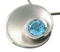 Bright blue topaz shell shaped pendant with a polish and matt finish.