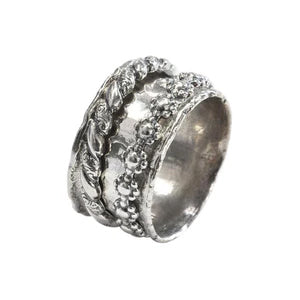 Silver flower and twist spinning ring