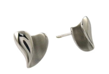 Contemporary heart petal design stud silver earrings with a polish and matt finish.