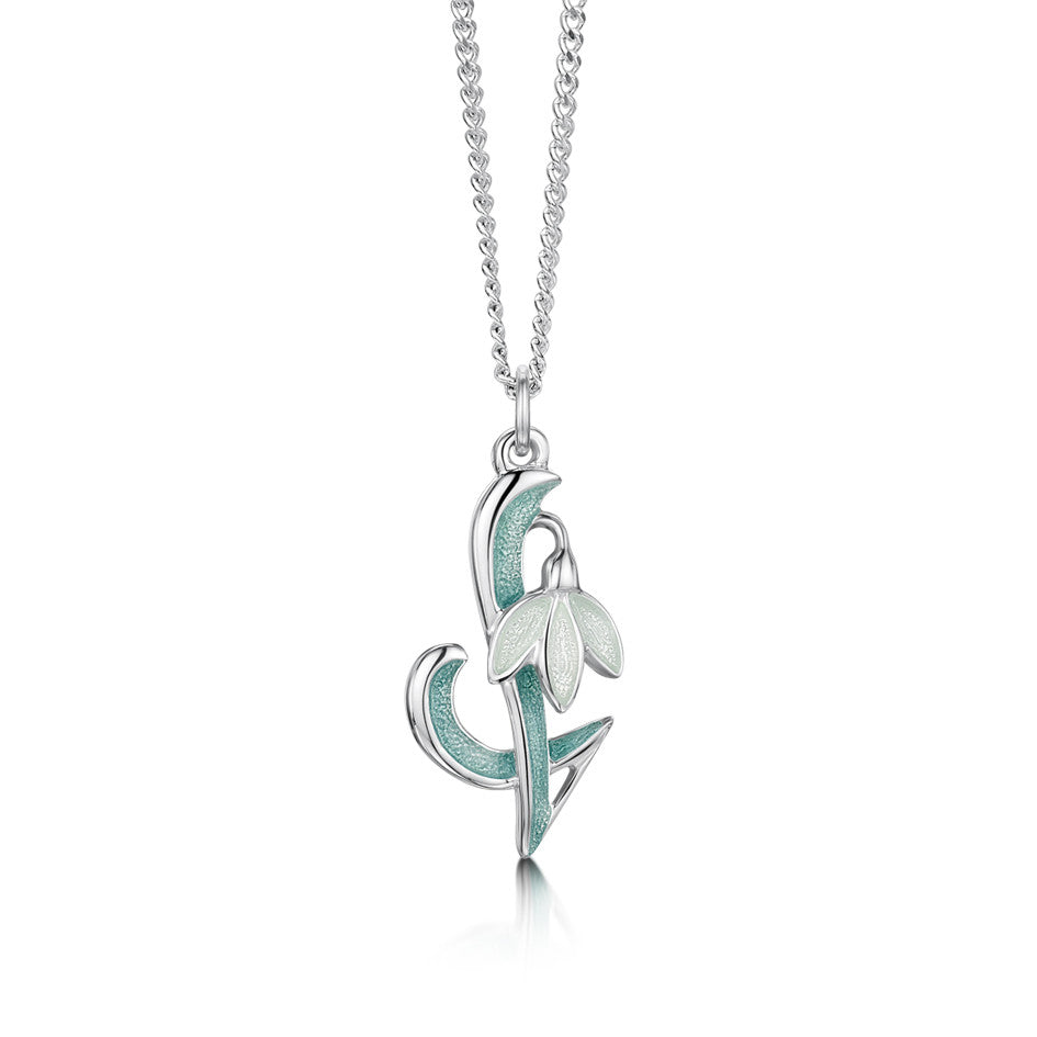Sterling Silver Snowdrop Pendant by Sheila Fleet. Walking through the woodland at Forss in Caithness, the dense carpet of delicate winter Snowdrops gave Sheila the inspiration to design this floral collection.